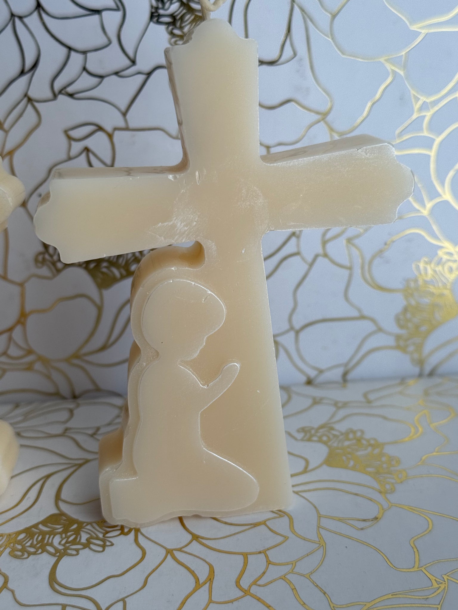 This 1.7oz pillar soy wax candle is perfect for religious events and party favors. At 4" tall, it showcases a cross design and has a Cempasúchil scent for a serene and spiritual ambiance. Made with clean-burning soy wax, it is a thoughtful and practical addition to any religious gathering or event.